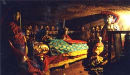 辽代石窟“真寂之寺”即林东后召庙石窟寺。其寺位于辽上京南15公里的山谷中。石窟开凿在桃石山东南面陡壁上,分中、南、北三窟。窟前是清代续建的喇嘛庙“善福寺”。中窟眉额刻“真寂之寺”四个大字,当为辽代开凿石窟的题名。“真寂”二字与中中窟内释迦牟尼“圆寂”之意相合。窟内释迦卧佛像周围有佛弟子像若干,做悲哀状。窟壁有千佛像百余尊,形象各异,南窟雕像中间为佛,骑狮子和象的文殊、普贤二菩萨分列两边,又有供养人服侍,窟门口有金刚力士像。北窟分内外两室,外室雕像同于南窟,内室造像均为浮雕,有佛、弟子和供养人,两侧刻有胡服装束力士像一对,颇具特色。桃石山谷口两侧缘石壁立有两尊金刚力士浮雕,十分生动,一东一西,各自把定金刚杵,足踏耐熏二鬼,另在岩壁和巨石之上多有清代阳刻梵文:“六字真言”。“真寂之寺”附近的山谷中还有石窟若干,其中有辽史所记弘福寺及开化寺遗址,诸多迹象表明这里是辽、清两代弘扬佛法的对地。