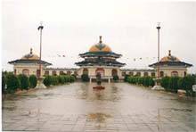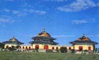 成吉思汗陵,人称“成陵”;位于鄂尔多斯高原的中南部,内蒙古伊克昭盟伊金霍洛旗内。从包头出发需4小时左右,陵园主体建筑是三座相连的蒙古包式大殿,雍容大方,嵯峨耸立,分外壮观,殿内有历代相传成吉思汗使用过的马鞍等珍遗物,殿外有大汗作战用过的大战车及各种兵器,每年农历三月二十一按古老的传统祭奠程序进行的祭成陵活动声势浩大,具有浓郁的民族特色。(详细资料稍后就上)