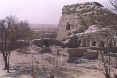 从乌审旗南行100公里到巴图湾,折东北越无定河走10公里处,有一座巍巍古城,矗立在茫茫沙漠中,这就是统万城。
