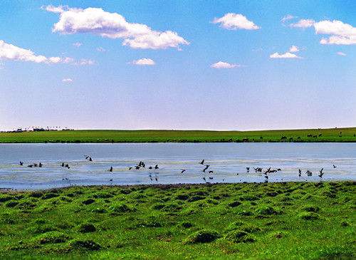 乌兰泡又称乌兰诺尔。乌尔逊河北流至距呼伦湖南80公里处分成两支,汇成乌兰泡。它是乌尔逊河的牛轭湖。泡子水面随乌尔逊河水量多寡而伸缩。水大时泡子东西长15~17公里,南北宽2~15公里,面积达75平方公里。枯水时泡子成为沼泽。乌兰泡水生植物非常茂盛,伴有大片芦苇塘,饵食丰富,是沉附性鱼类最理想的产卵场所,也是鸟类的乐园。