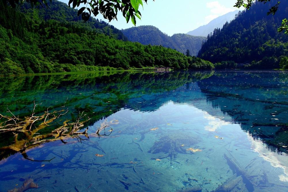 、“人间瑶池”的美誉。池水映出各种不同的色彩,五光十色,争奇斗妍;浅滩上水流涌动,阳光照射,波光粼粼,晶莹透亮;水下铺垫着一