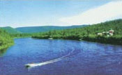 "九曲松风"飘流游路即选在激流河下游水阔流急地段,漂流水道全K10公里,连接白鹿岛度假村。顺流而下,犹游山水画廊,行舟水上,忽急忽缓。两岸山峰高低错落,时而壁立如削,时而谷开深远。岸上,不同形态的原始森林板块次第展现,时而山杨树如女迎宾,时而白桦林似仙列阵。舟行宽处,河中岛掠船而过;舟行窄处,仿佛置身水上森林。漂流于此,不时会冲起一群群水鸭惊恐地拍打着水面与游船竞跑,将要抓住它时,忽一下钻逆水底不见踪影。有时会冲起几对苍鹭,舞动宽大翅膀,盘旋在雾蒙蒙的水面上,为幽静的山水画幅凭添上几分生机和秀色。