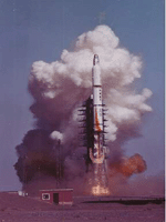 在巴丹吉林沙漠腹地、古弱水河畔,有一个世人罕知的小城镇,连现今的地图上也未对此做任何标记。然而这个小城镇却是世界三大航天中心之一、创造中国航天史上“九个第一”、实现中华民族飞天梦想的地方--东风航天城。1960年9月,中国第一枚远程导弹发射成功。