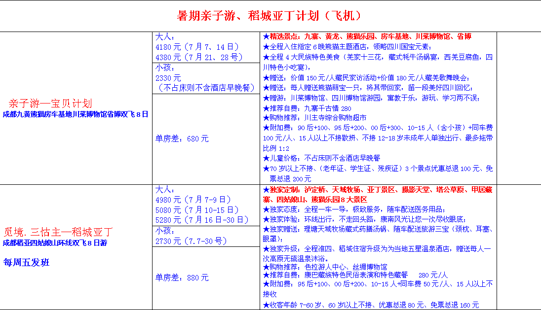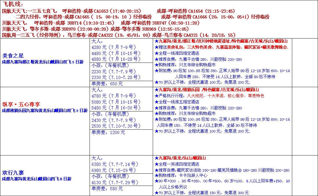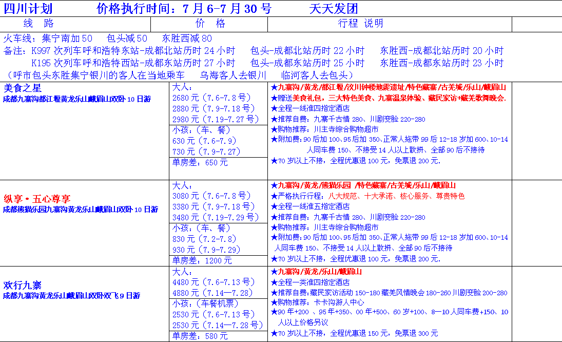 2017年7月四川旅游报价
