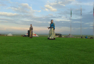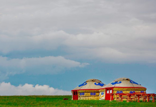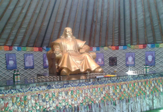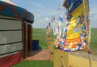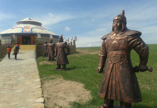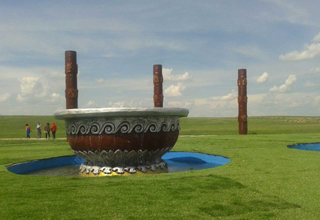位于贡格尔草原上的蒙元文化城景区,蒙元文化城景区主要是由7部分组成,大门、成吉思汗银碗喷泉广场、苏力德、成吉思汗纪念堂、腾格里敖包、体验牧民生活和那达慕会场。