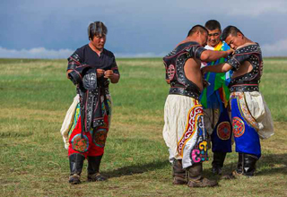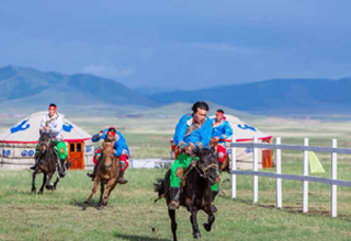 那达慕,蒙语是“娱乐”或“游戏”的意思。它在蒙古族人民生活中占有重要的地位,是适应蒙古族人民生活的需要而产生的。那达慕大会有着悠久的历史。这里那达慕会场可同时容纳800人观看表演。场内设有博克场 、赛马跑道、看台、舞台,蒙元文化城将以表演的形式,展现出传统那达慕的各种特色运动,(各个方队入场仪式、赛马、摔跤、射箭、等)在这里让游客一睹“男儿三技”的风采, 可以激情参与力与勇的较量,一展马背英雄的英姿,还有精彩的歌舞表演(长调、马头琴、蒙古舞蹈、呼麦等)。每天要表演4场,每一场表演1小时左右。下面演出就要开始了,请各位准备好你宝贵的双手喝彩吧!
